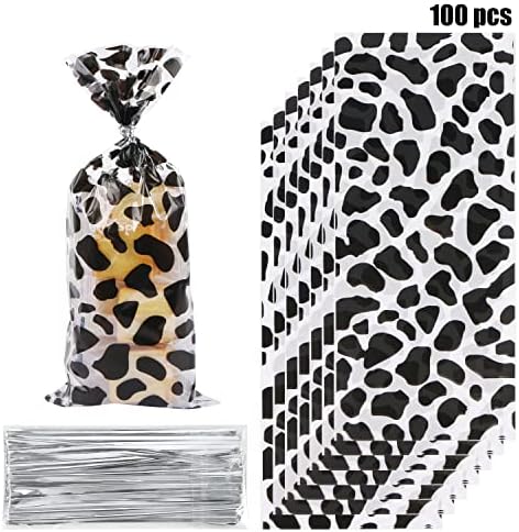 Amazon Com 100 Pcs Cow Print Goodie Bags Cow Party Favors Treat Bags Cellophane Gift Bags With Twist Ties For Cow Theme Baby Shower Cowgirl Cowboy Birthday Party Supplies Health Household
